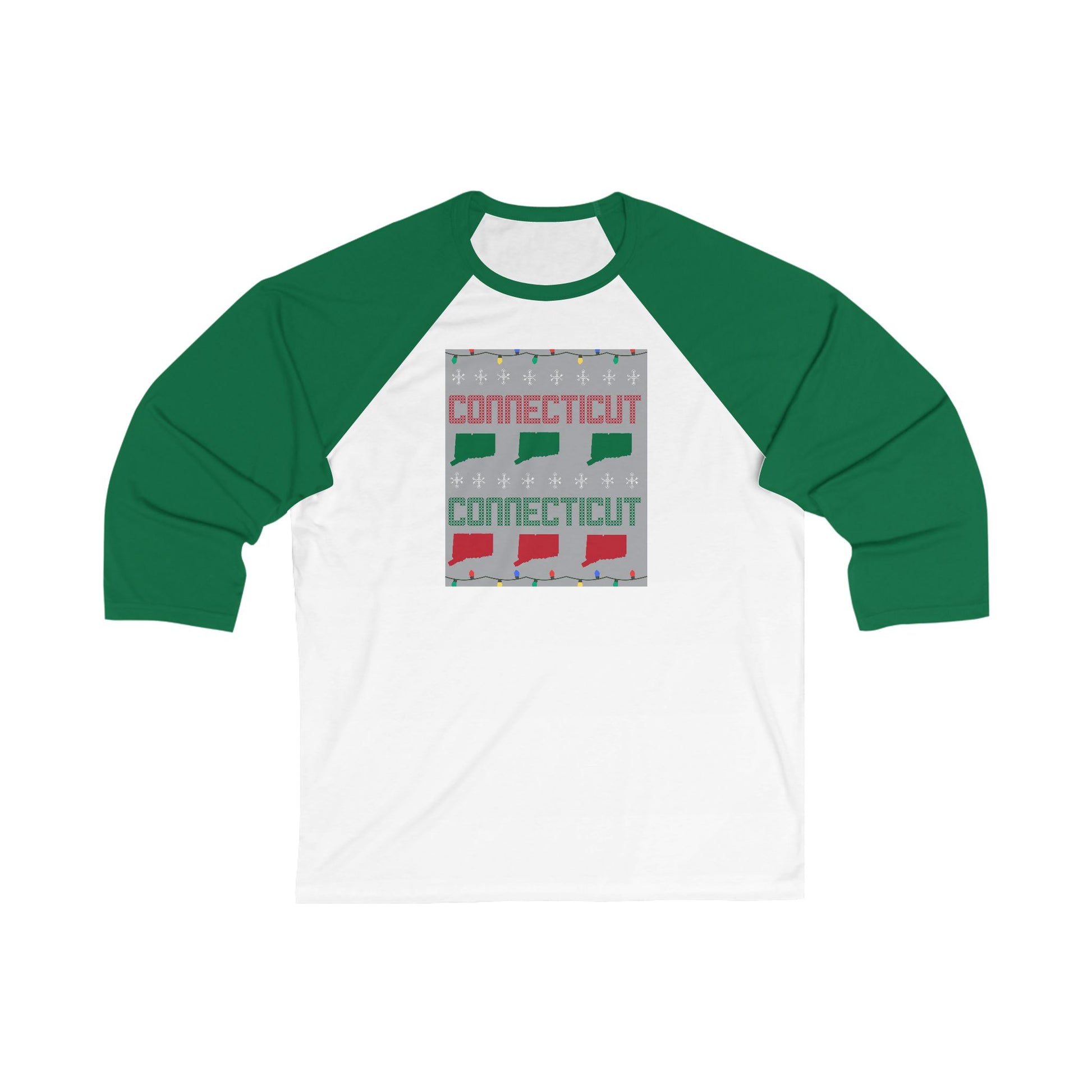 Connecticut Ugly Holiday Unisex 3/4 Sleeve Baseball T-Shirt