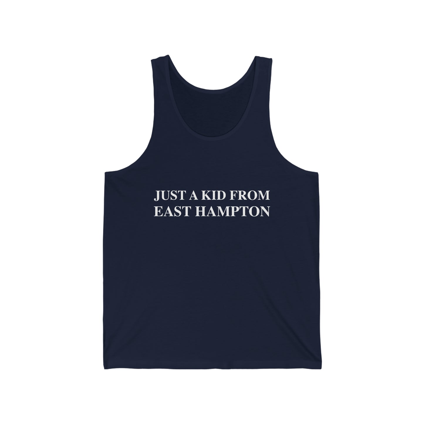 Just a kid from East Hampton Unisex Jersey Tank (white)